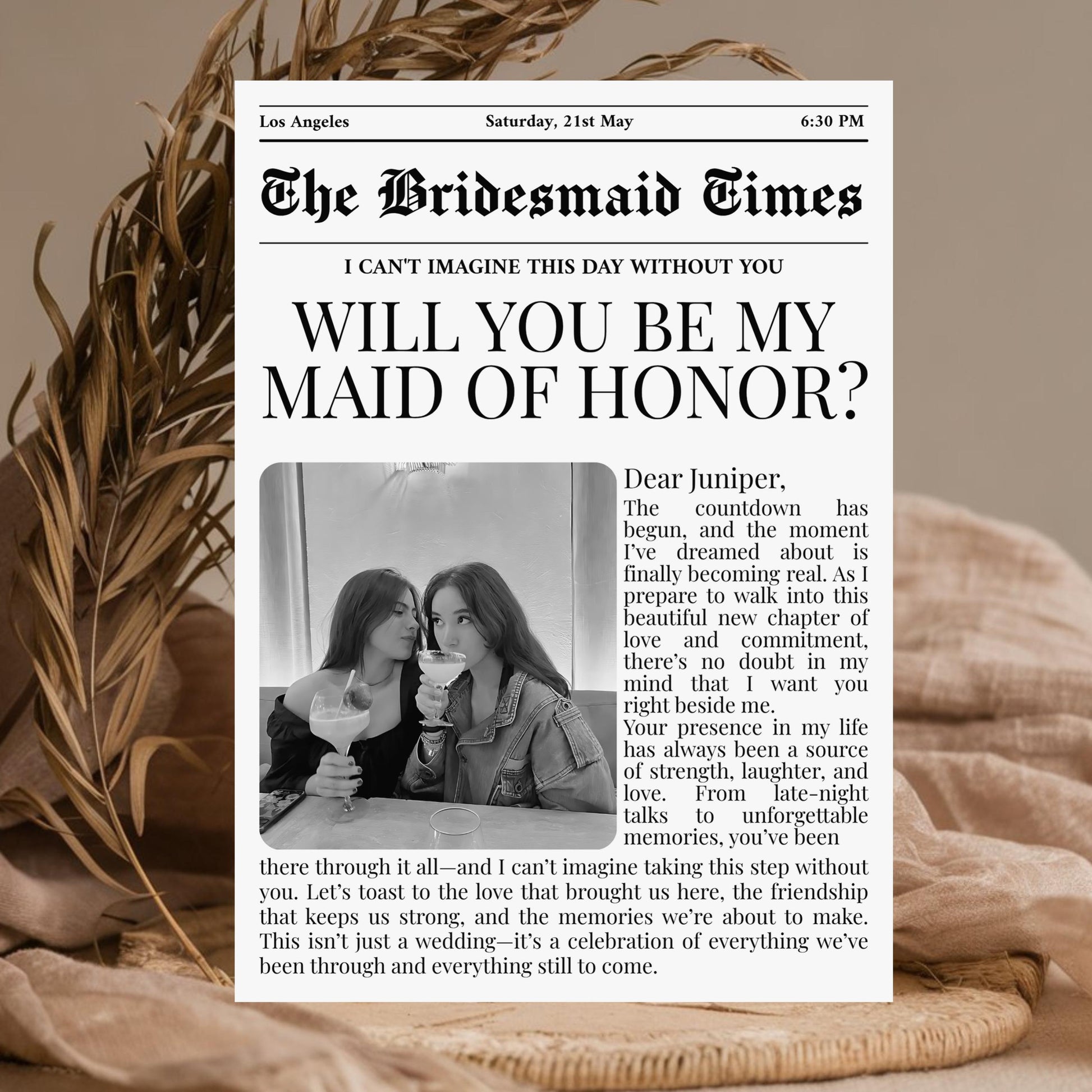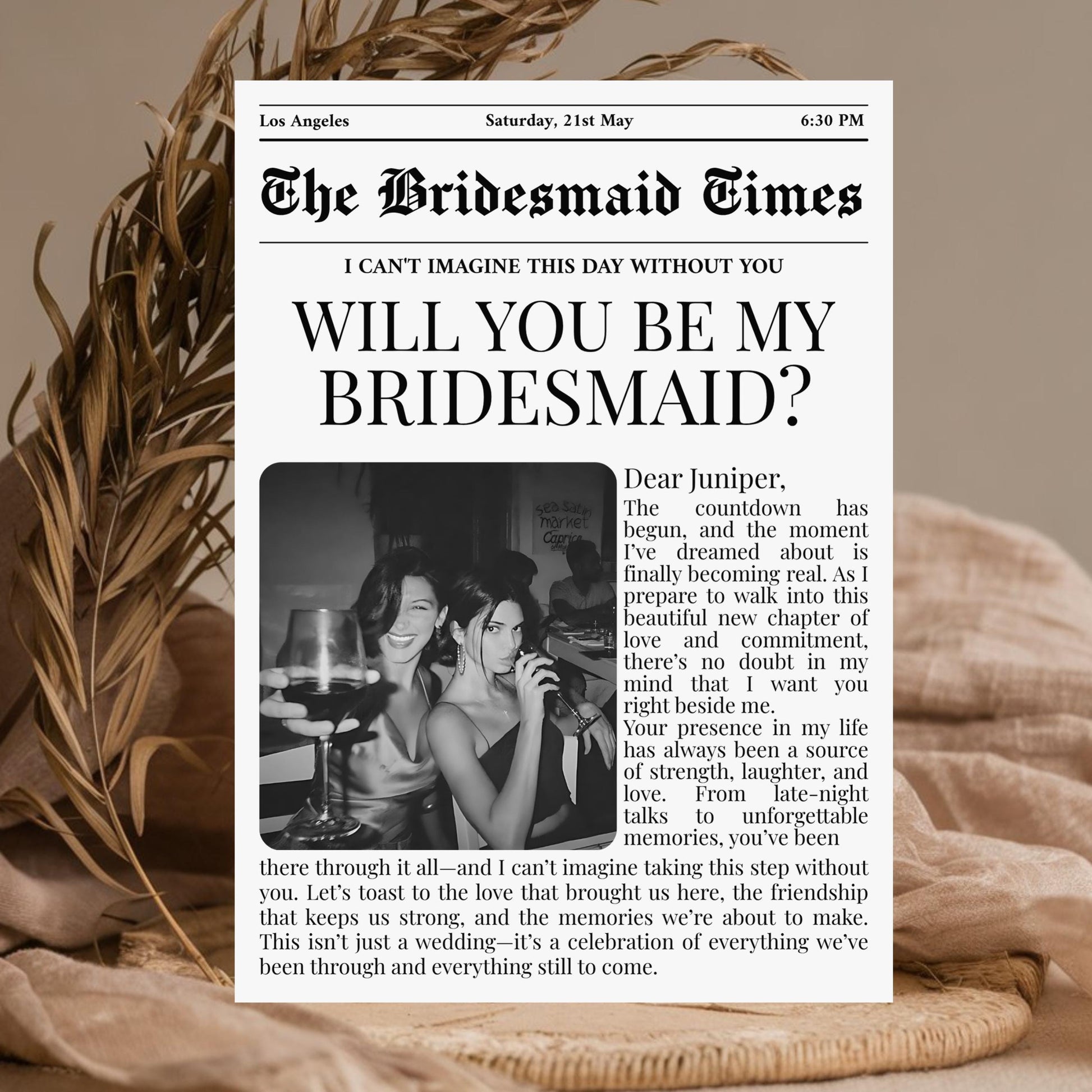"BRIDESMAID PROPOSAL NEWSPAPER CARD, WILL YOU BE MY BRIDESMAID, BRIDAL PARTY DETAILS"