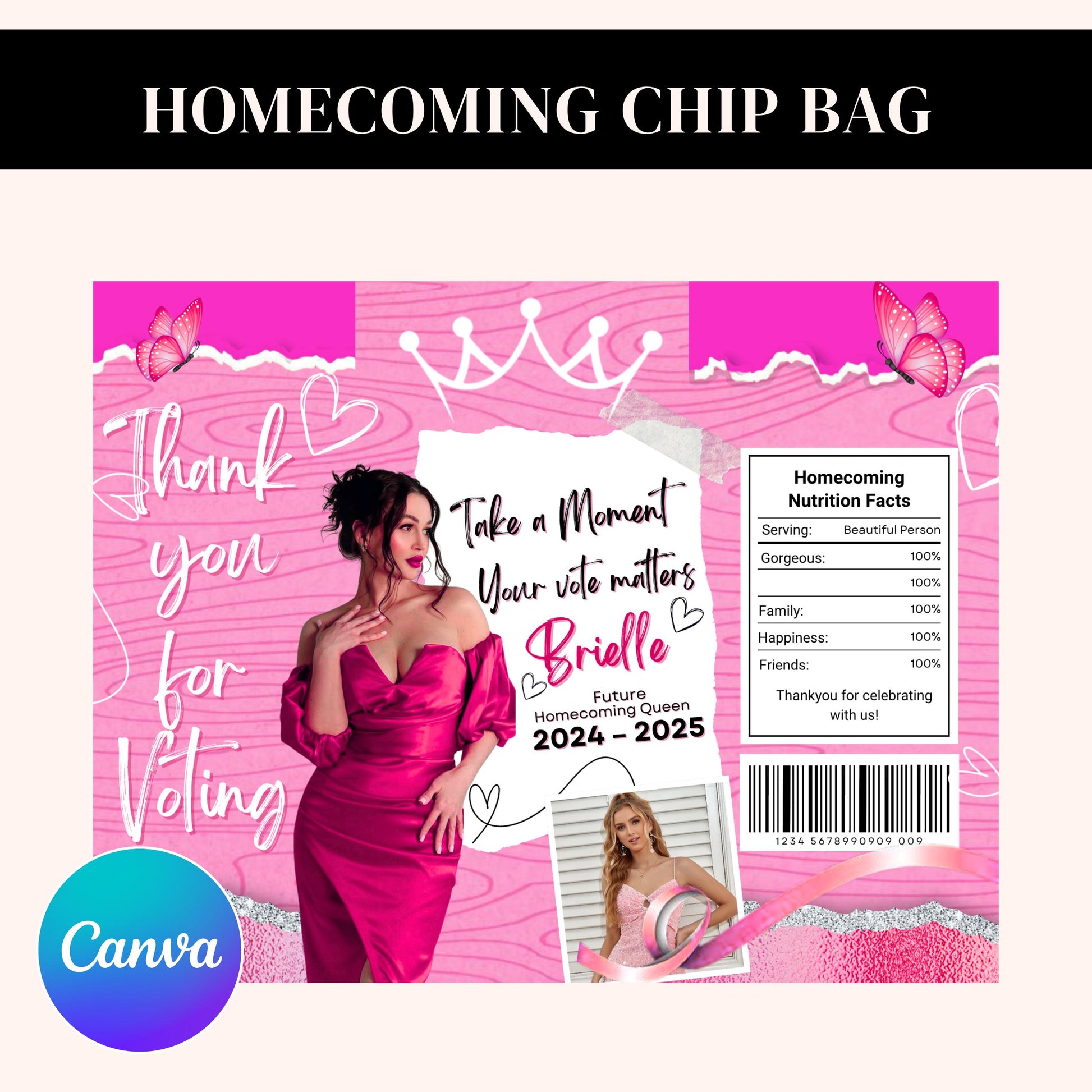 Homecoming Chip Bag Template, Homecoming Campaign, Vote For Queen, Chip Bag Template, Hoco Chip Bag, Canva Template Instant Download