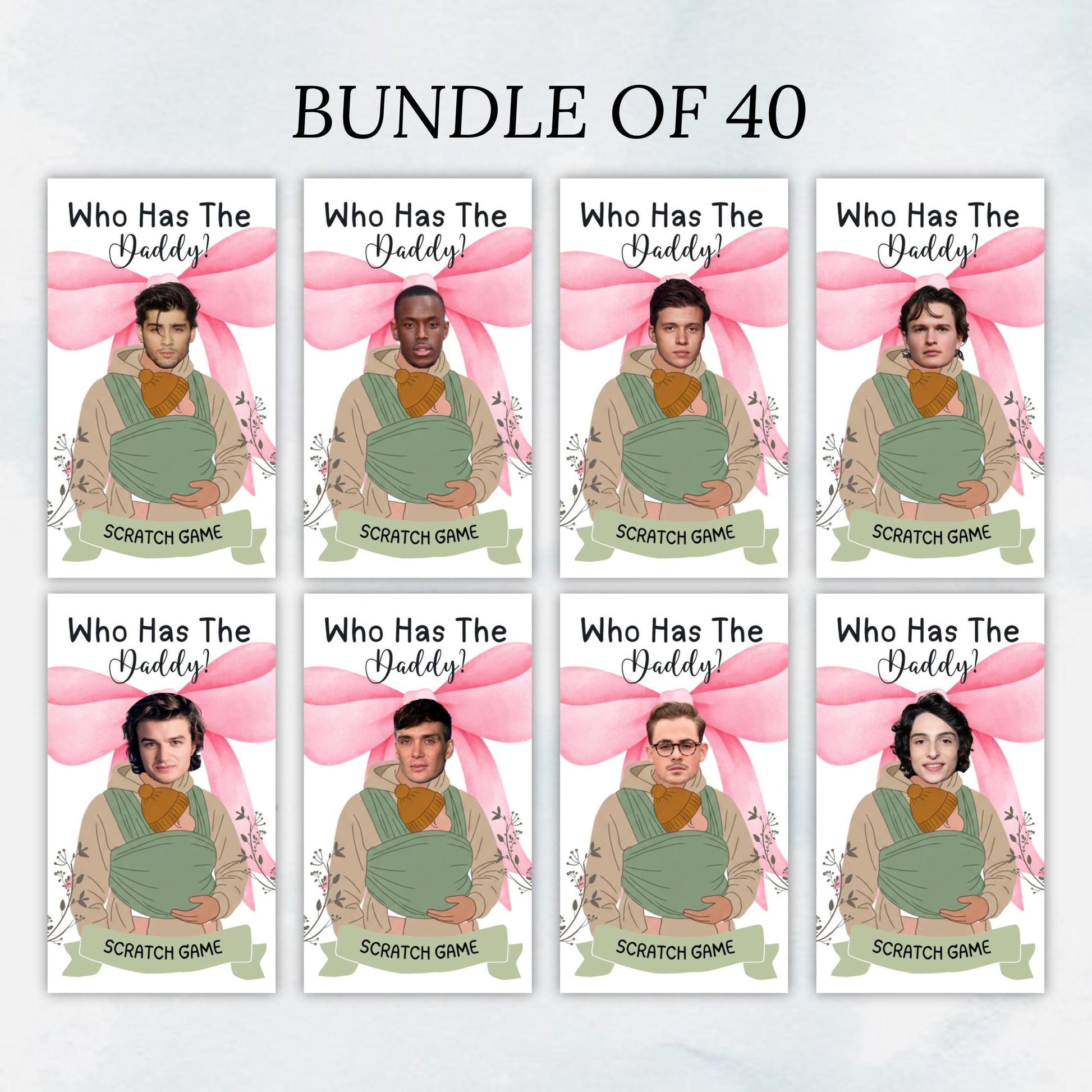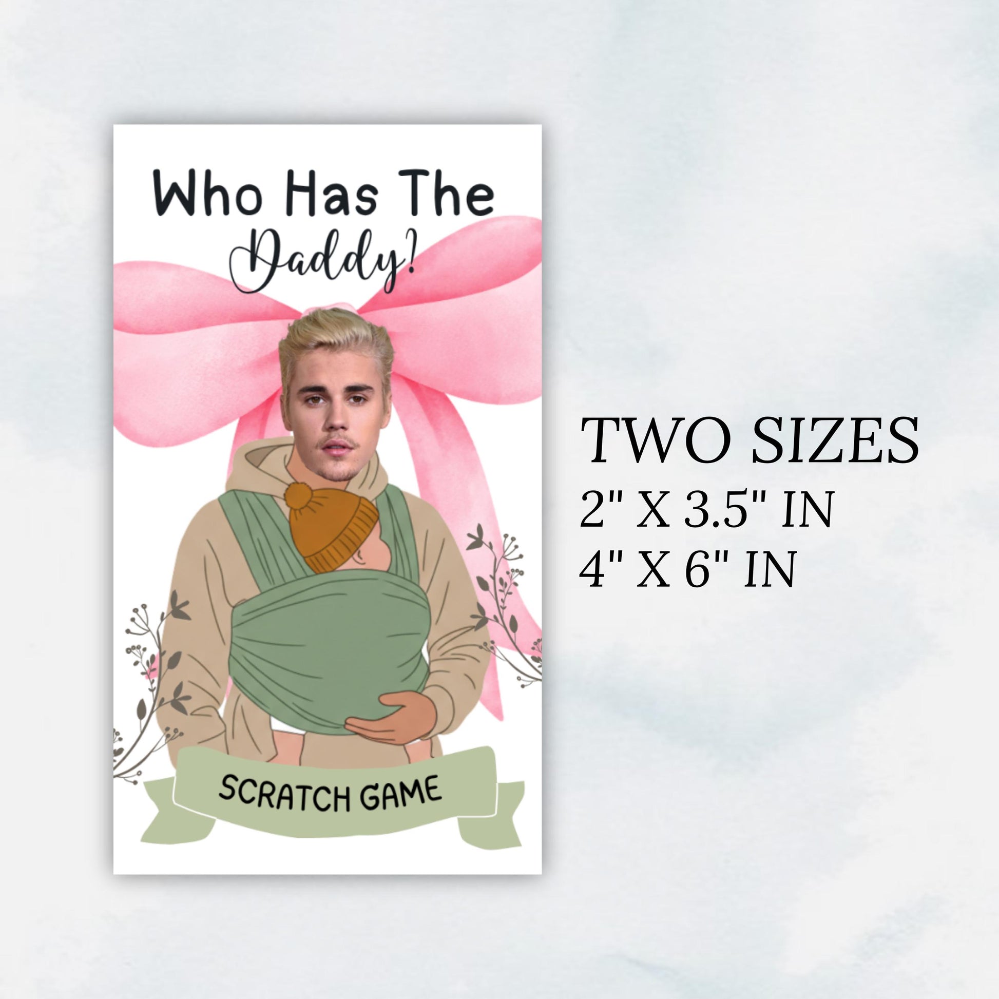 Pink Bow Who Has The Baby Daddy, Printable Baby Shower Game, Find Daddy Scratch Game, Editable Celebrity Scratch Off Cards, Canva Template