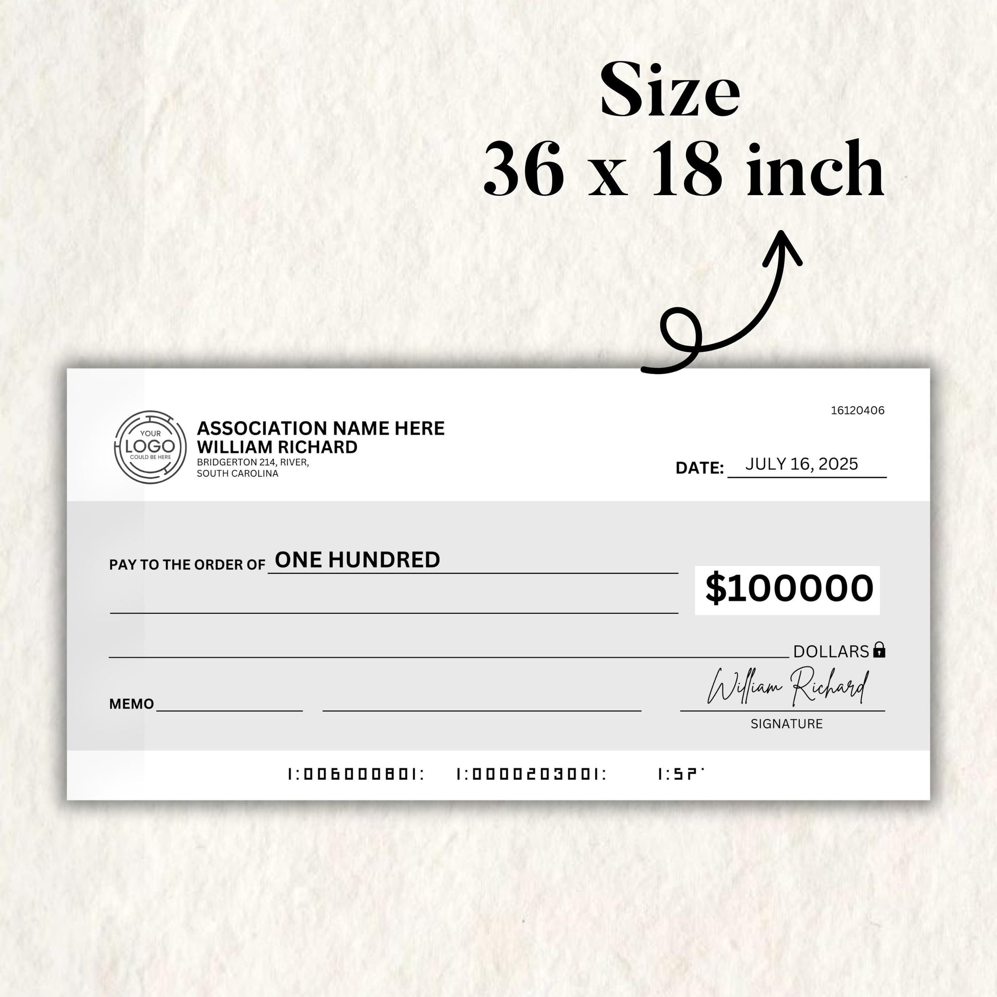 Super Large Blank Check, 36 x 18 in Manifestation Check Canva,Blank Check Blank,Check for Charity fundraising event,Personal Check Template