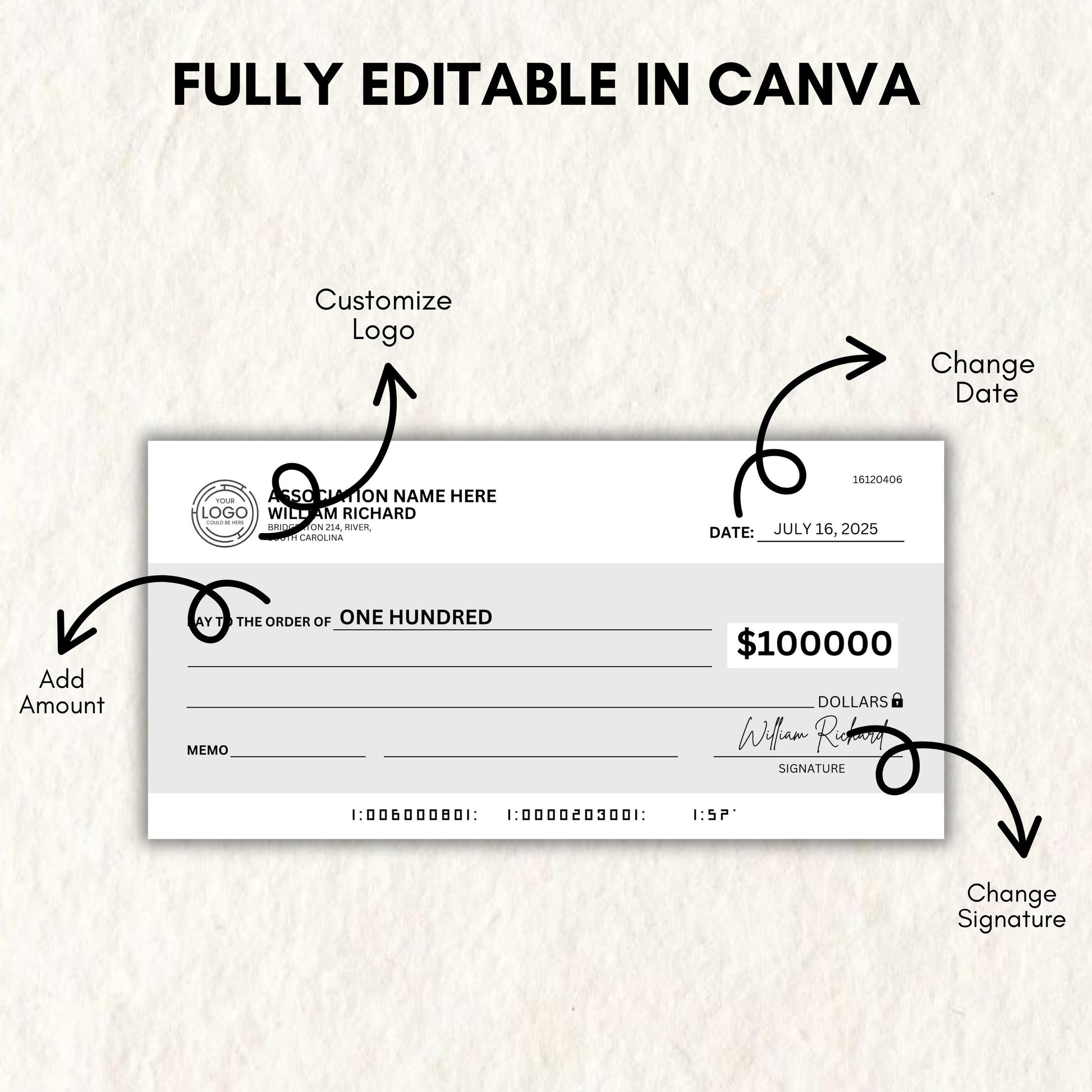 Elevate your fundraising or manifestation goals with this Blank Check Template! Perfect for charity events, personal use, or vision board goals, this editable Canva template allows you to customize details effortlessly. Whether you're hosting a charity fundraiser or using it as a manifestation check, this template is a versatile and stylish solution. Instant download and easy to personalizeƒ??start creating today!